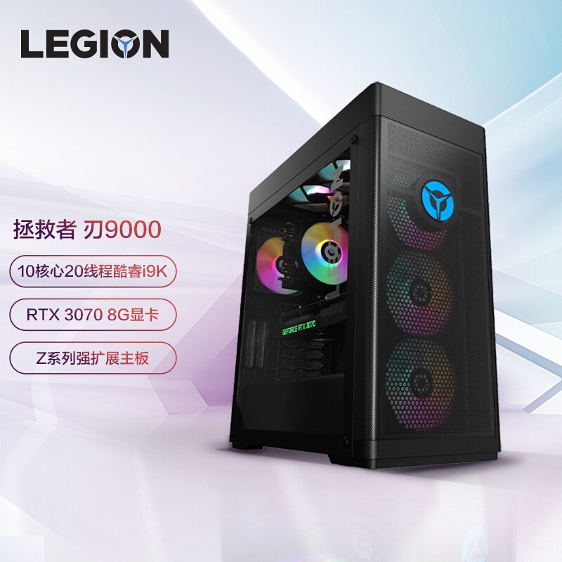 联想拯救者刃9000(Lenovo ren9000)台式电脑,游戏设计制图电脑 I9-10900K 32G 2T+1T固态 RTX3060TI-8G显卡 +N2719曲面屏Win10