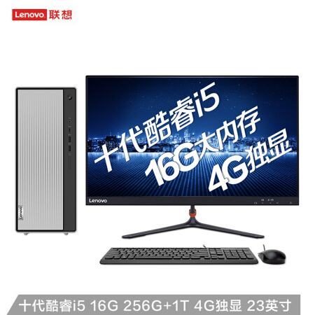 联想扬天T4900全新十代酷睿i5-10400 主机 定制:i5/ 8G/1T+128G 2G独显 +23.0英寸液晶 /台式电脑