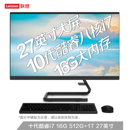 联想 Lenovo AIO520C 英特尔酷睿i7一体台式机电脑27英寸 i7-10700T 16G 1TB+512G SSD 2G独显 无线键鼠 黑